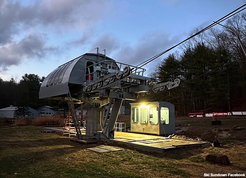 Lift installations are in various stages of completion as a Thanksgiving snow storm blankets much of New England.