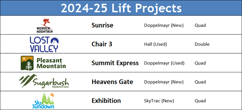 Many hours to the north, Big Rock was the first installation completed this year. A new Doppelmayr fixed grip quad will serve the main mountain while the North Star Double, a 1970s Mueller, will remain in place in the interim. Other improvements at Big Rock this offseason include new snowmaking infrastructure and trail lighting.