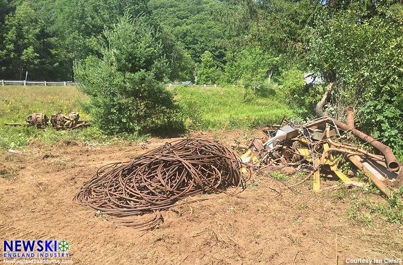 The long-idle West T-Bar at Berkshire Snow Basin has been demolished in recent weeks. The 1961 Doppelmayr T-Bar served as the summit lift at the Western Massachusetts ski area until its closing in 1989.